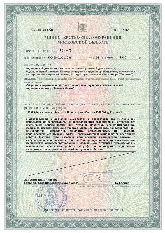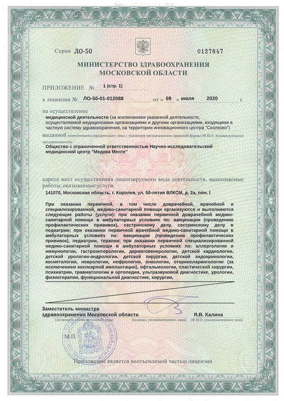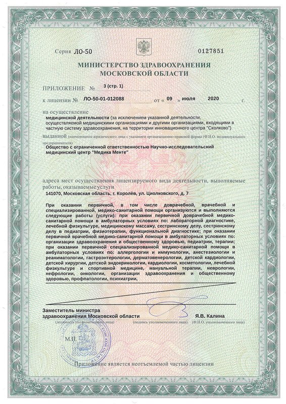 Клиника МедикаМенте - это многопрофильное медицинское учреждение, предлагающее индивидуальный комплекс процедур для каждого клиента. В работе клиники все построено с учетом комфортного пребывания посетителей. Новейшее оборудование центра помогает провести диагностические исследования организма пациента для составления программы лечения и профилактических мероприятий. В клинике работают отделения анестезиологии, фтизиатрии, психиатрии, общей терапии, кардиологии, ревматологии, гастроэнтерологии, пульмонологии, аллергологии, иммунологии, нефрологии, гематологии, лечения инфекционных заболеваний, неврологии, эндокринологии, дерматологии, венерологии, урологии, андрологии, колопроктологии, гинекологии, акушерства, маммологии, онкологии, психотерапии, офтальмологии, оториноларингологии, педиатрии, ортопедии. Наши работники имеют профильное медицинское образование и с пониманием отнесутся к вашим проблемам. Доверяя свое лечение нам, вы можете быть уверены в результате. Также мы поможем с подбором диеты.